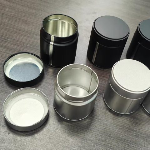 Barattoli di latta Matcha di 60mm di diametro a tenuta stagna per alimenti semplice tappo a vite opaco Matcha in polvere contenitori per alimenti
